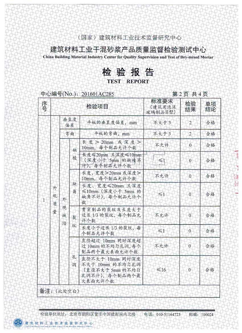 以上是它檢測的全項系數(shù),泡沫玻璃板廠家告訴您一般做單項檢測的就是導(dǎo)熱系數(shù),抗壓強度,這兩項,檢測依據(jù)泡沫玻璃板JC/T647-2014《泡沫玻璃絕熱制品》,防火等級區(qū)分依據(jù)的是GB8624-2012建筑材料及制品燃燒性能分級,如果您還有其它問題請聯(lián)系廠家河北中泰天成節(jié)能科技有限公司,咨詢電話:18003365866